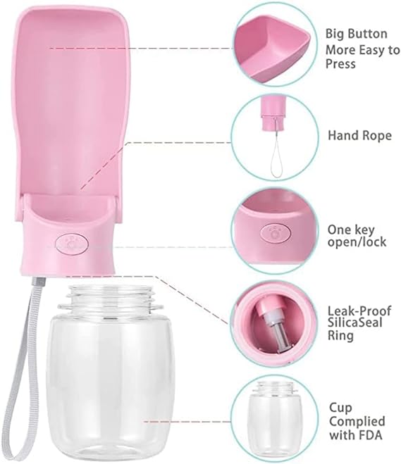 Foldable Cat Water Bottle, Portable Cat Water Bowl Dispenser, Leak-Proof Dog Travel Accessories Dog Water Dispenser, Pet Water Bottle for Dog Cat Outdoor Walking Hiking Travel(12 oz)